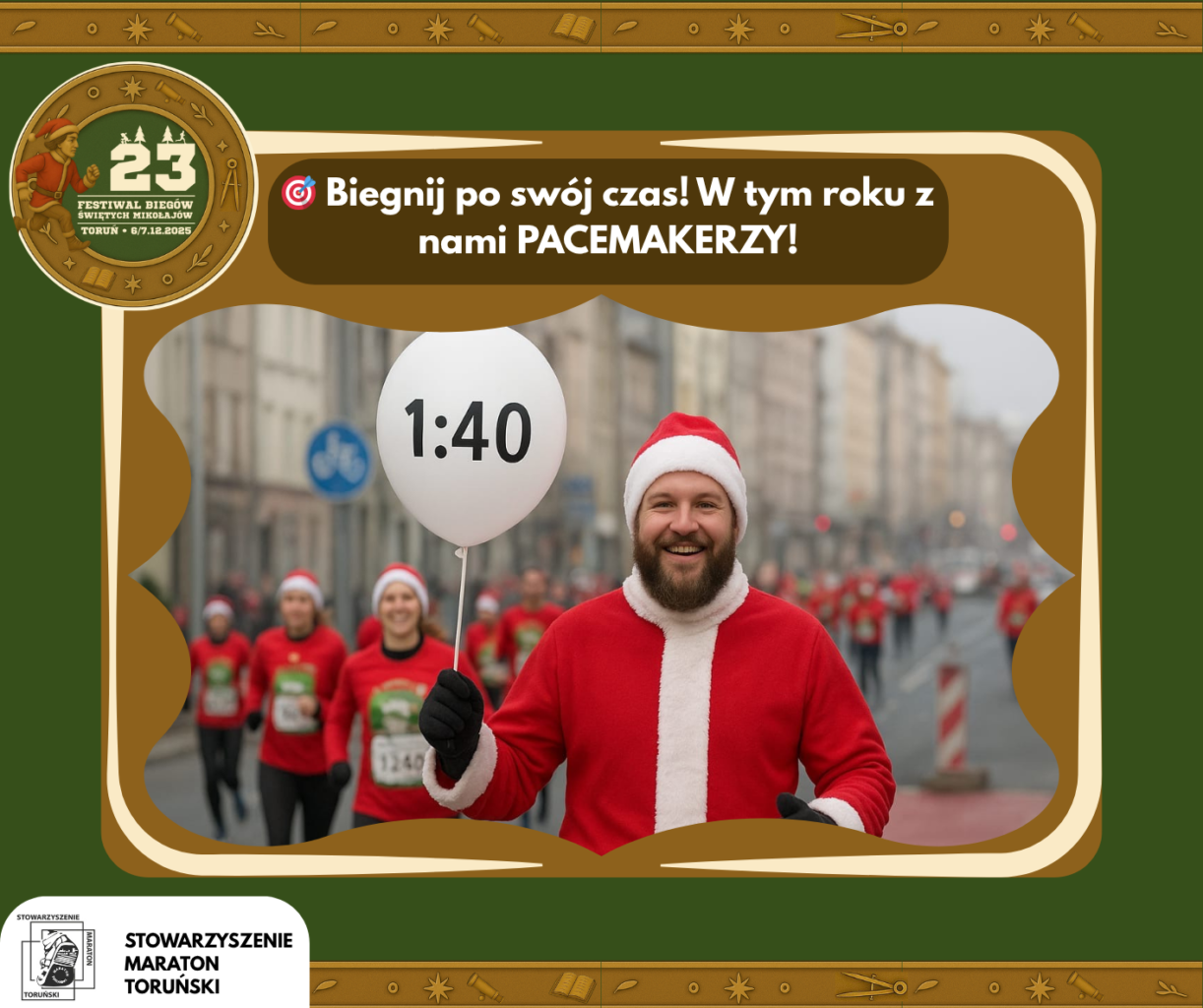 Po raz pierwszy na naszym Półmaratonie Festiwalu Biegów Świętych Mikołajów pojawią się PACEMAKERZY 🕐
