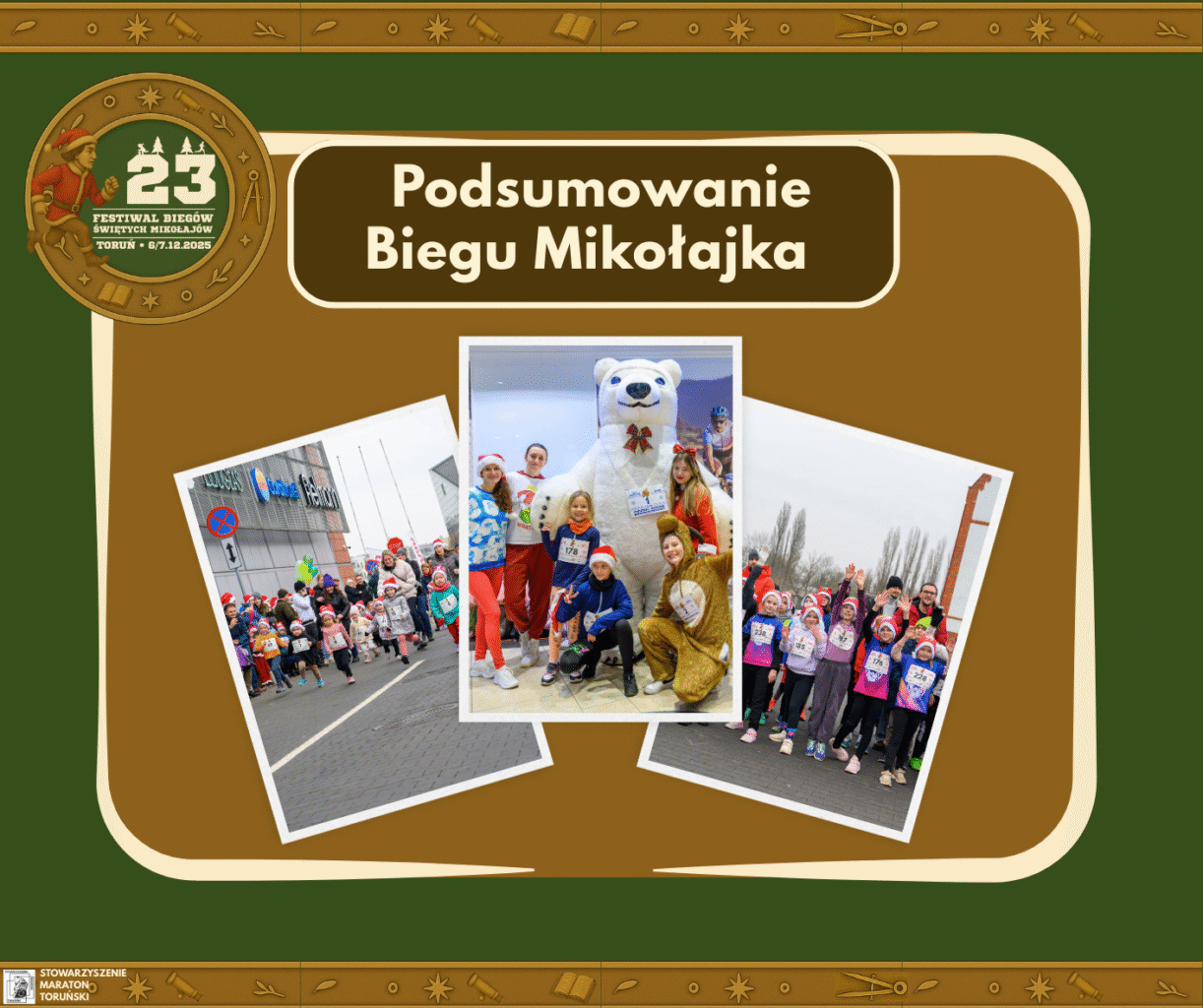 Bieg Mikołajka, który odbył się w Mikołajki – 6 grudnia 2025 roku – przyniósł ogrom radości i świątecznej energii. Wystartowało w nim 267 dzieci, a wraz z rodzicami, którzy wspierali najmłodsze pociechy , liczba uczestników była jeszcze większa. Rodzice również stali się częścią tego wyjątkowego wydarzenia.
